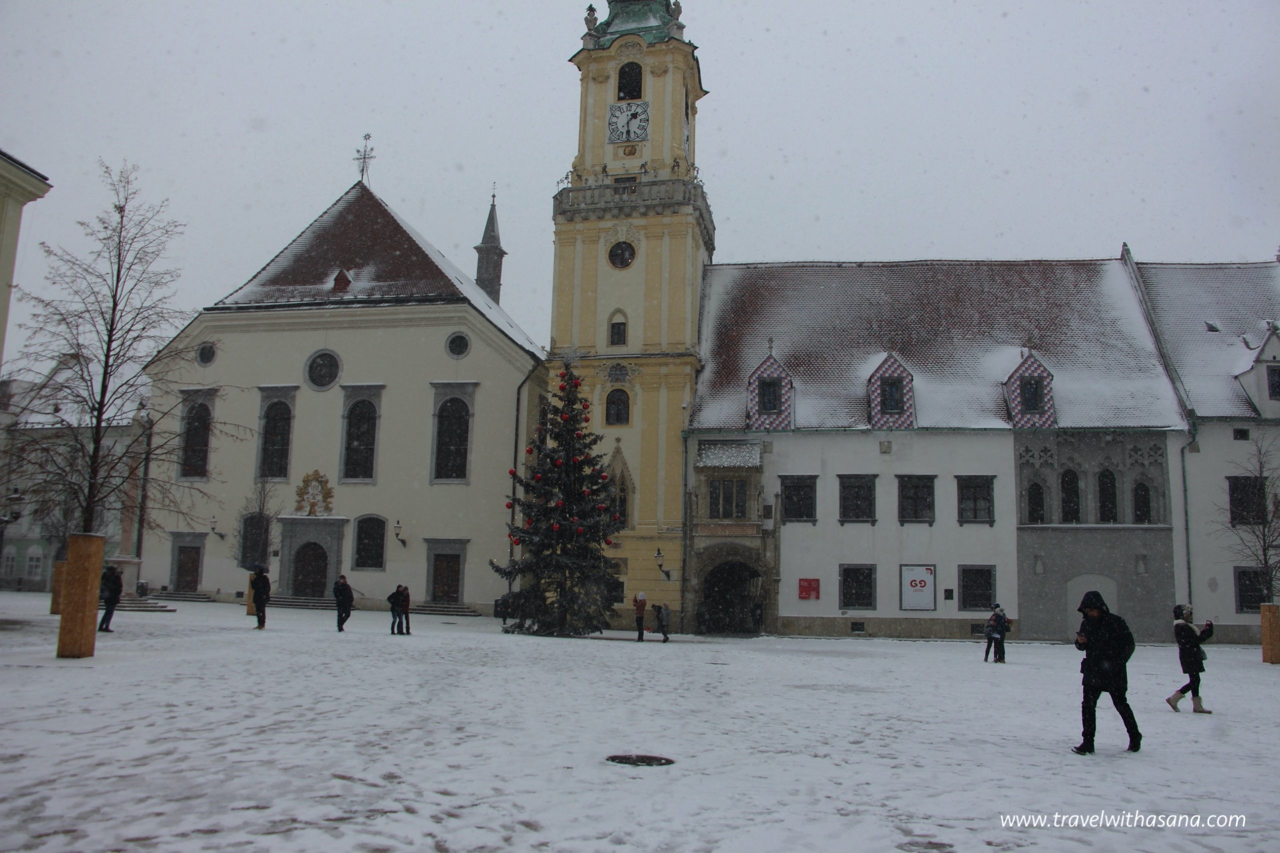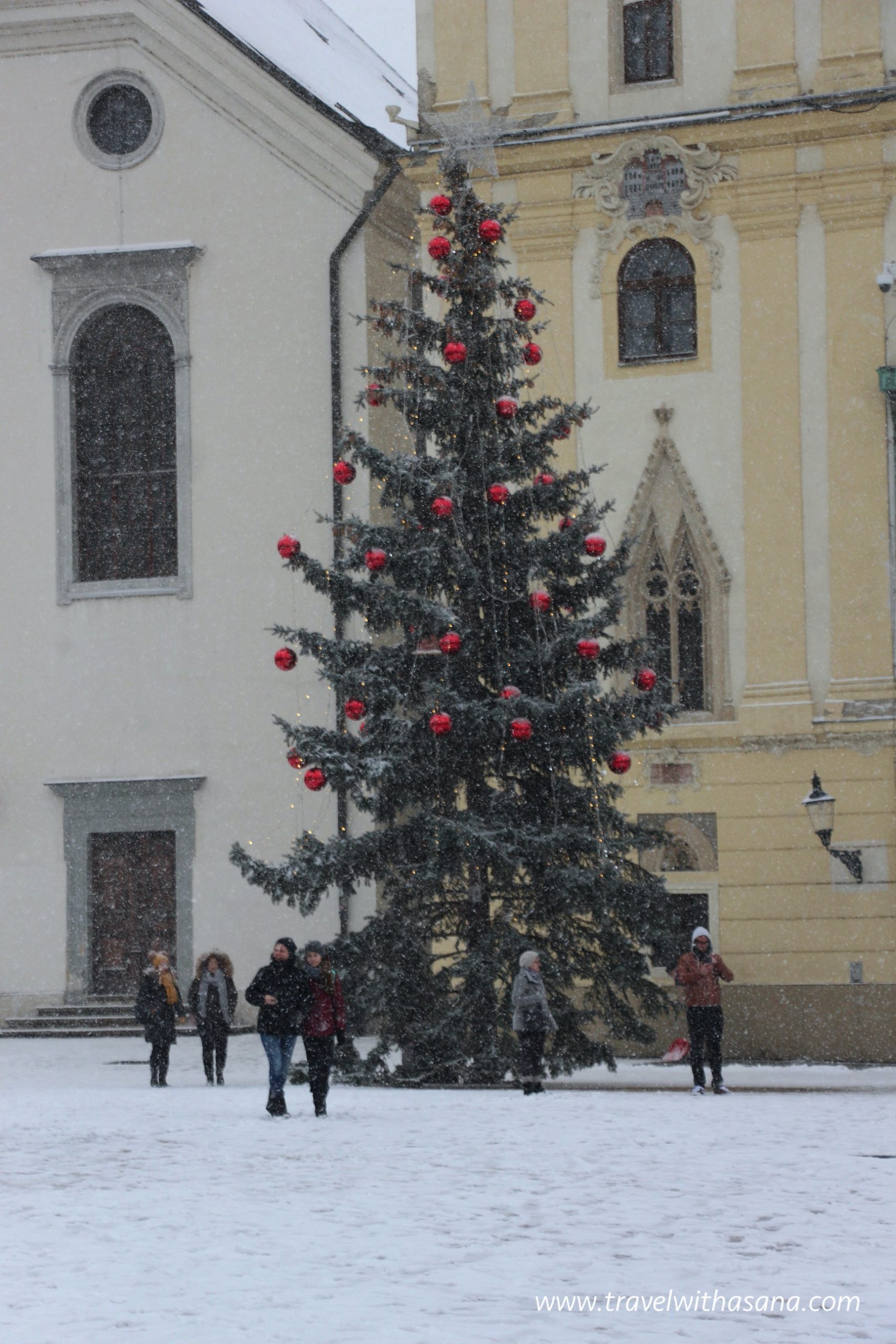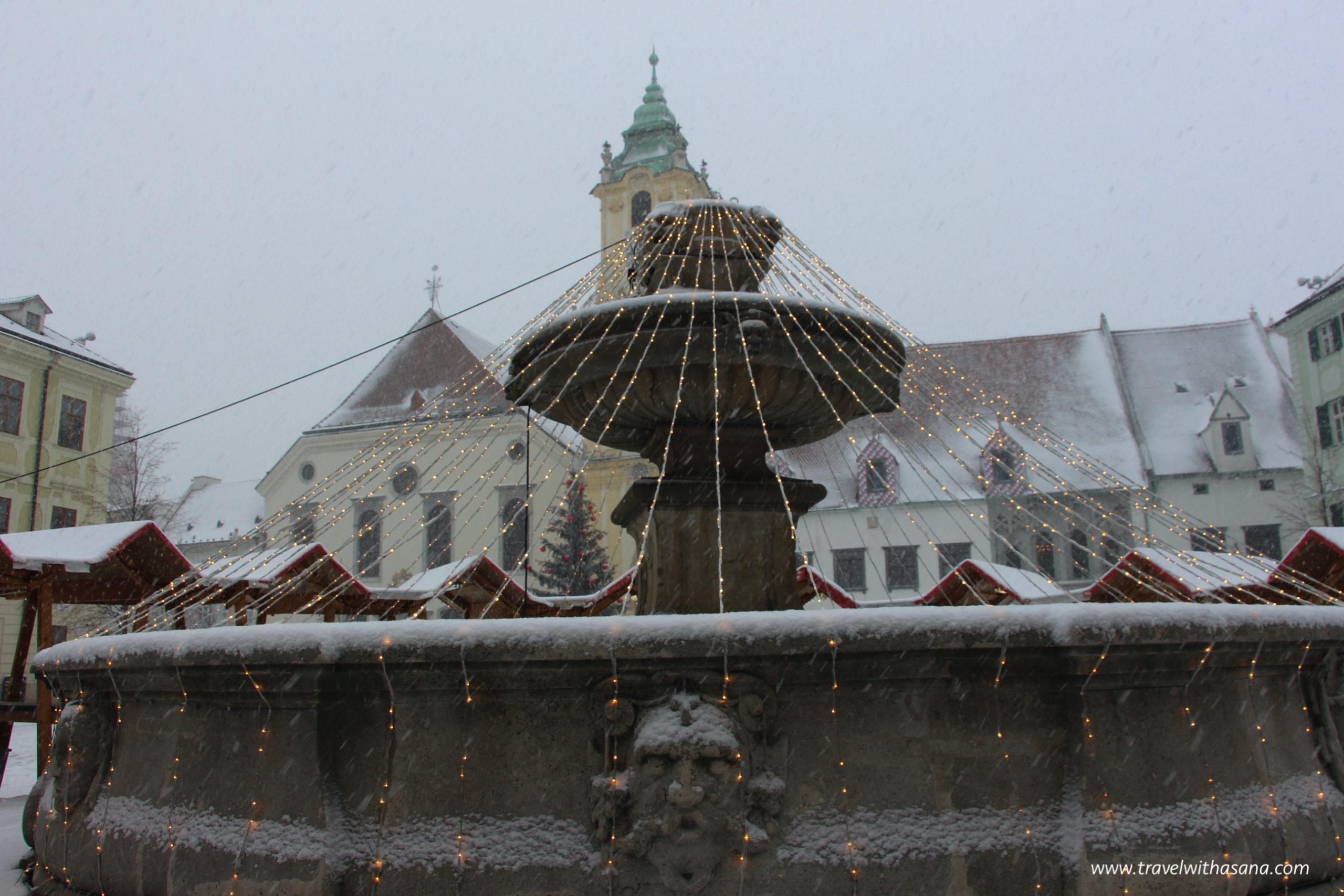 Roland Fountain is located at the old main square. Maximillian King built this fountain in 1572 to give public water supply. When we arrived at the town square, it was raining hard, and then snowing for good hours.