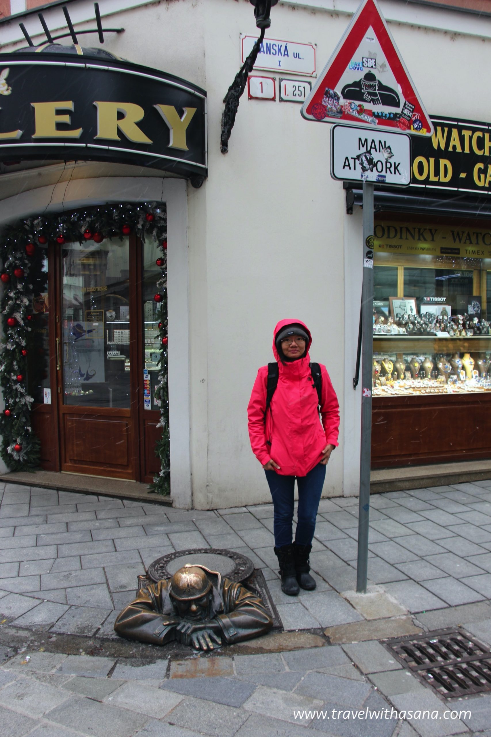 Taking the stroll in Old Town Square is probably the best activities in Bratislava. Although the atmosphere was nowhere near to Prague. The quiet walk give you peaceful mantra and slowly transported you back to 18th centuries. Stop at the statue “man at work” by Viktor Hulik. Several status are spread across the old Town but we only met one where the man statue sticking out of a manhole. The other statue looks like a guy peeking out from the corner as if to take a picture. You can find this statue at UFO restaurant. For more man at work status locations, you can read it here.