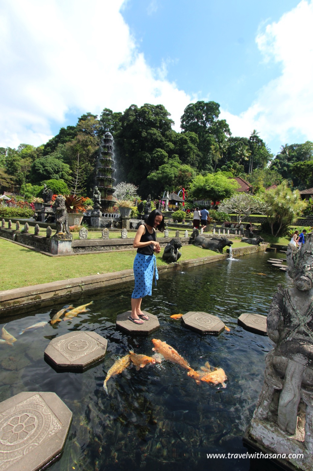 This place is also packed, and it’s not easy to move around. In the middle of the pool are stepping stones and everyone was trying to get picture with the fish with no one else around (which is impossible unless you get there very early). And around you is the water, so you may want to watch your step to avoid falling into the pool.