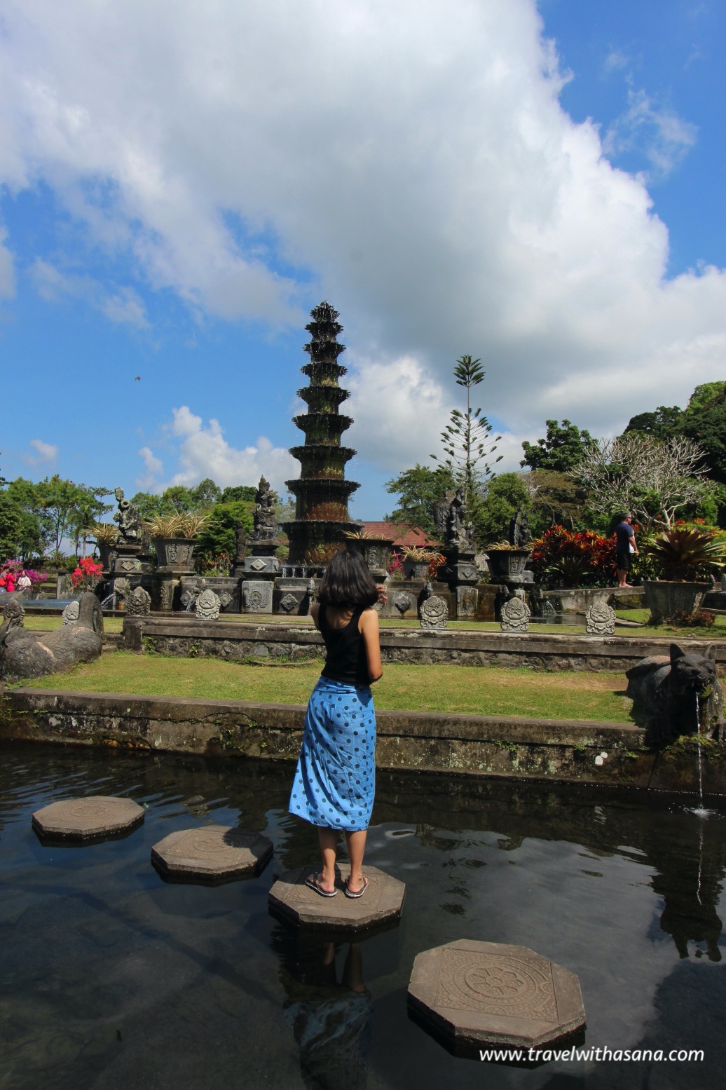 Tirta Gangga used to be a royal water palace and bathing pools. This is now both pool and garden. Aside from the maddening crowd, Tirta Gangga is really beautiful and exude peaceful atmosphere. What more amazing to watch is the seemingly huge fish in the pond. Before entering the garden, make sure you purchase the fish food. If you are interested in taking picture with the fish in it, the fish food help to gather some fish around you. I knew this trick from our guide 😉