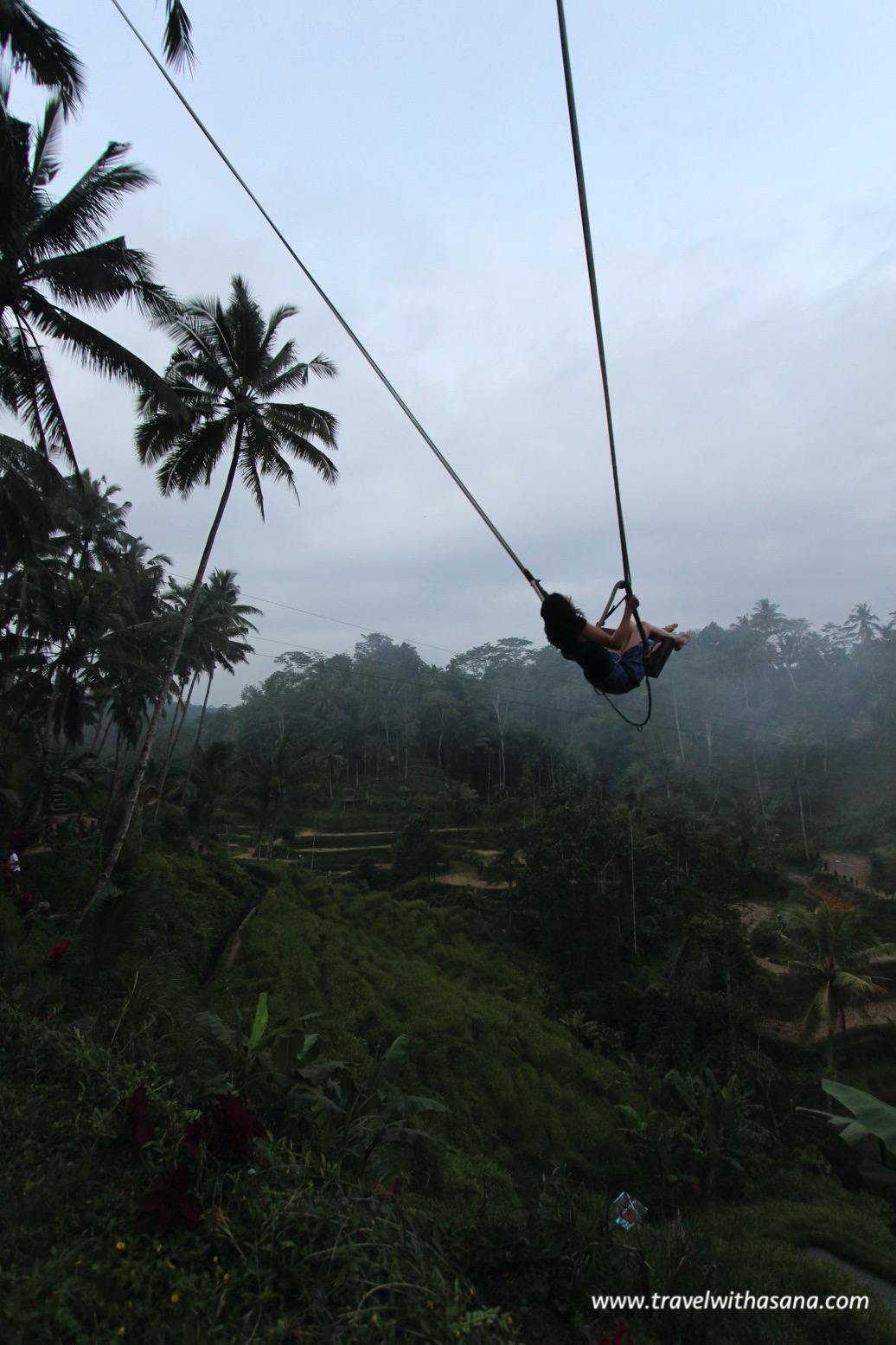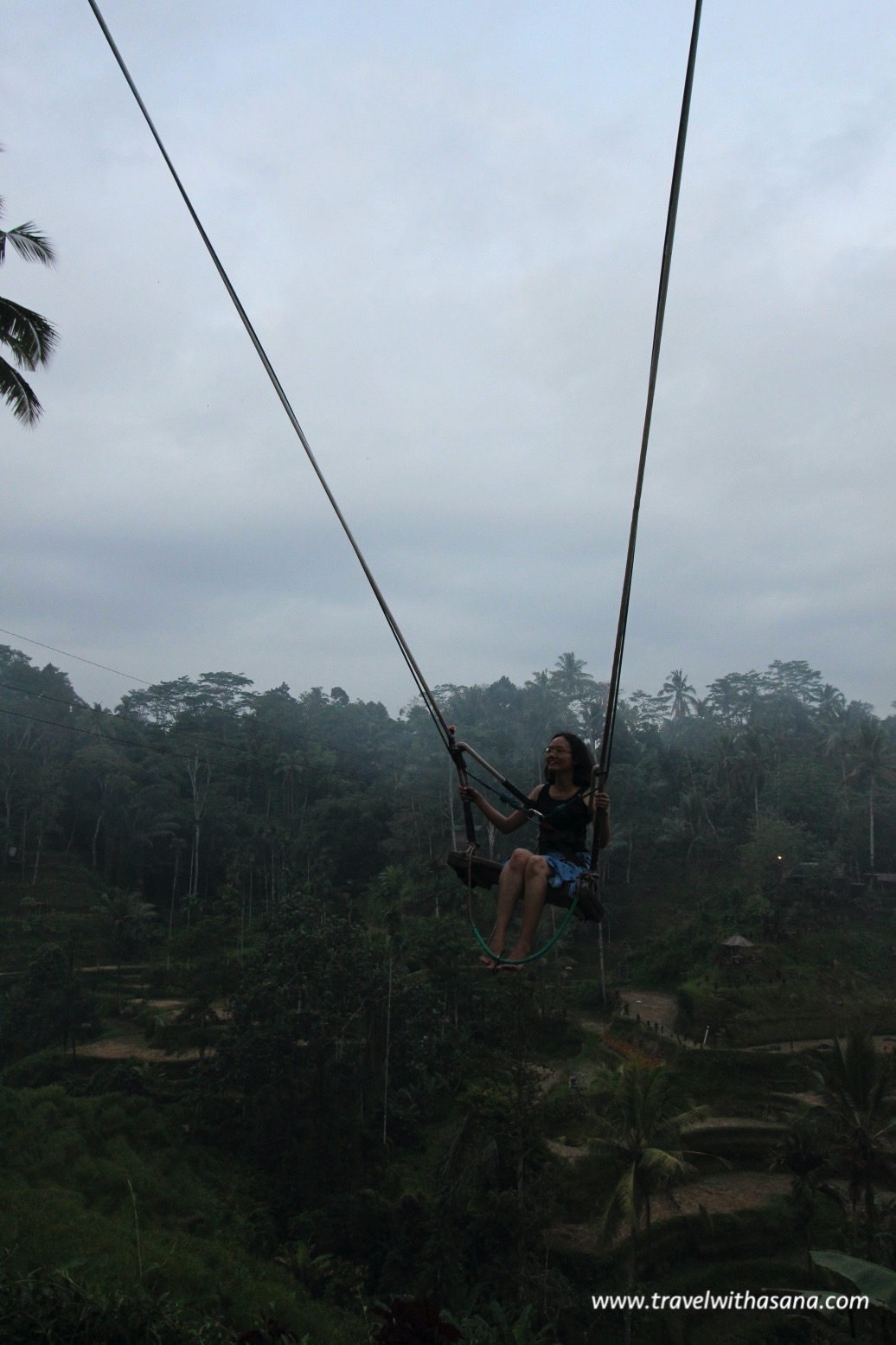 The price for the swing was 150,000 IDR (it is expensive). And you can have two ride where on the first ride you can sit facing the terrace (forward), and on the second you can choose to sit backward (facing the swinger). On my second swing, I told the swinger not to pull swing hard on me, just a light one for the sake of photo. Very.Ironic. You should see my expression on my first full swing. Gold!