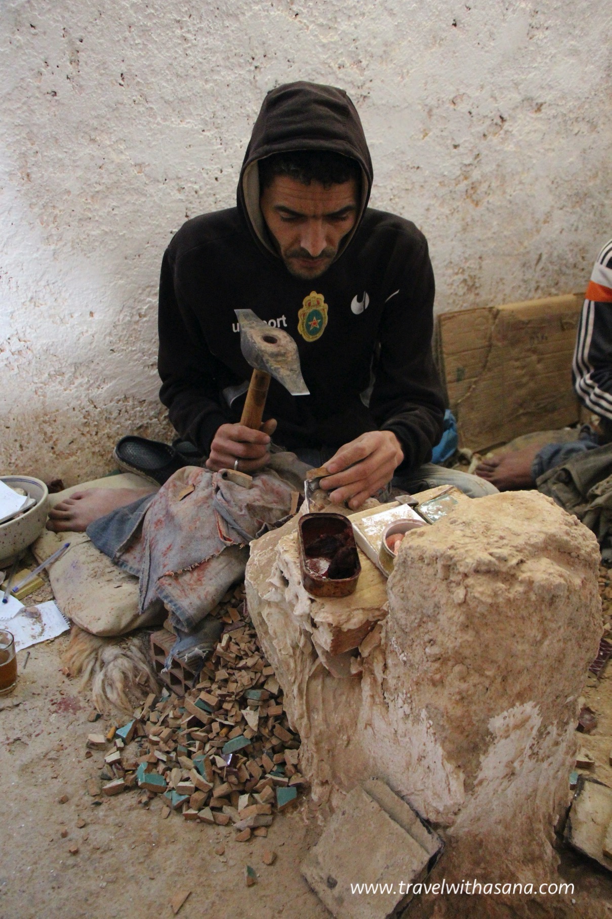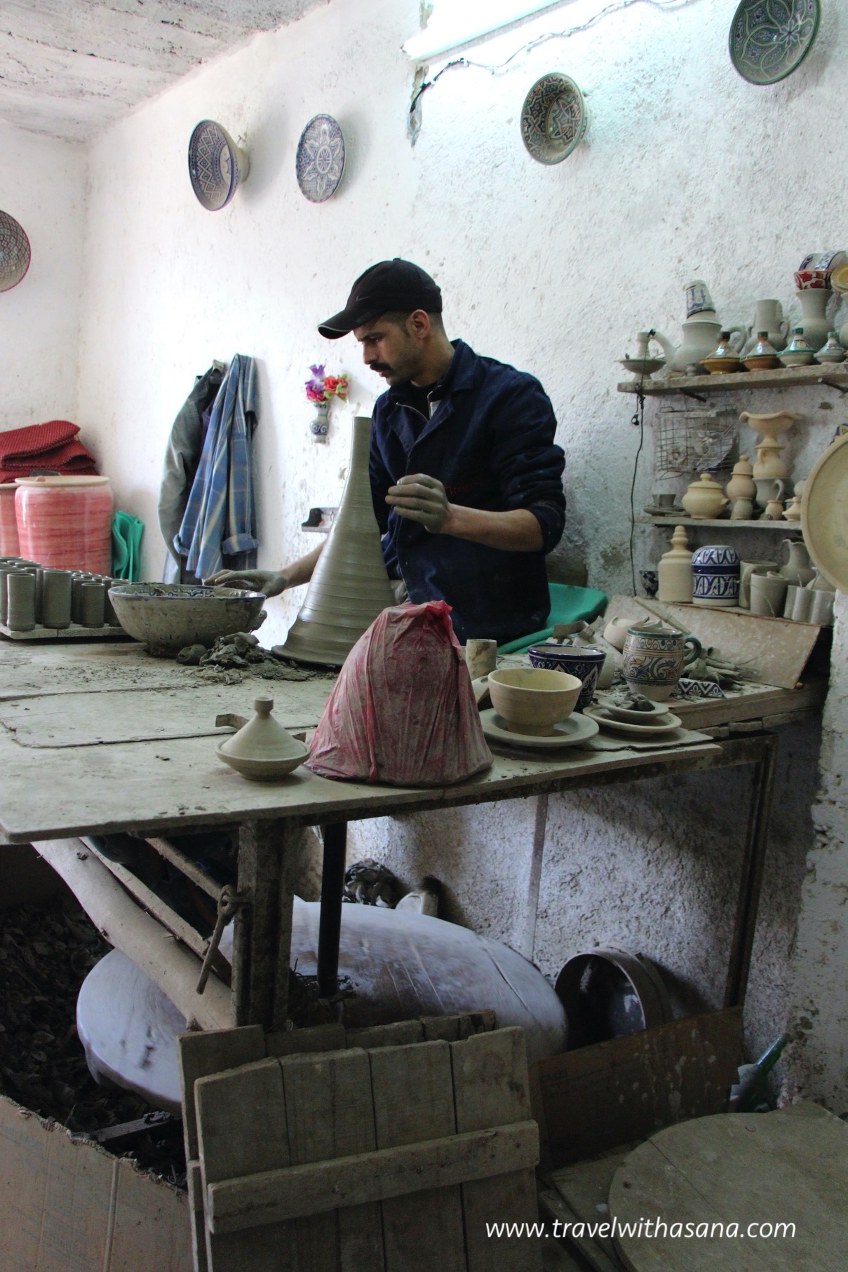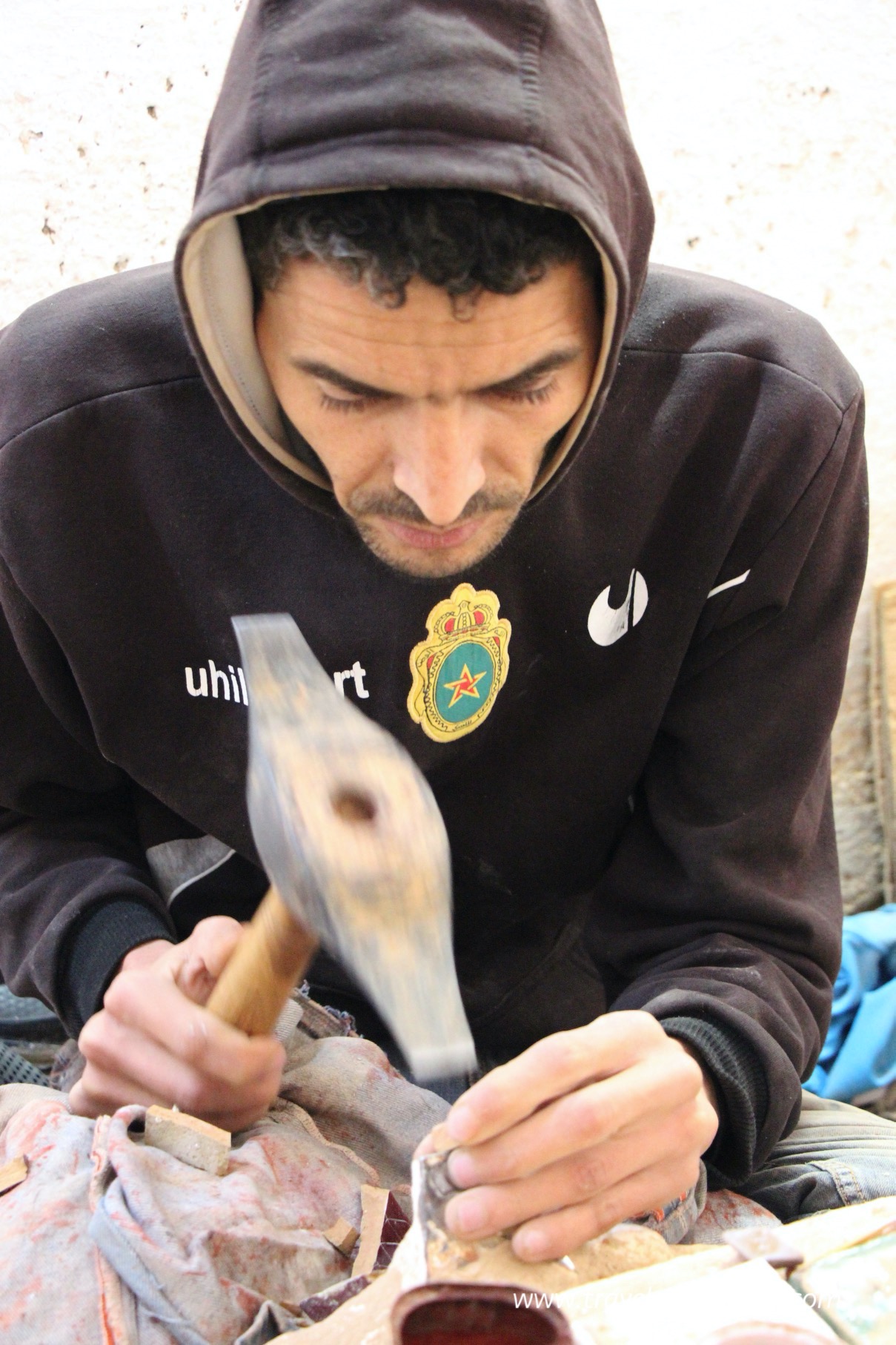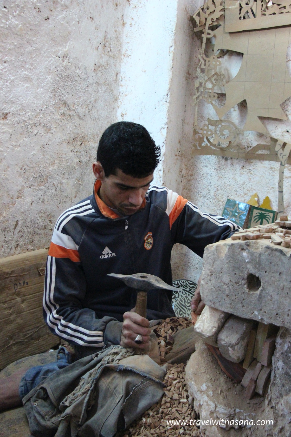 There are 3 big tanneries in Fez and the biggest one is Chouara Tannery. Tannery has stone vessel to store the dye for the leather. The hides use are from cows, sheep, goats, and camels. They are soaked in a white liquid from cow urine, pigeon faeces, and quicklime, salt, and water. The purpose of this initial process is to soften the skin and take up to three days. After that, the hides are soaked in colourful dye from natural colorants. The processes finish by drying them under the sun. These processes has not changed since medieval times.
