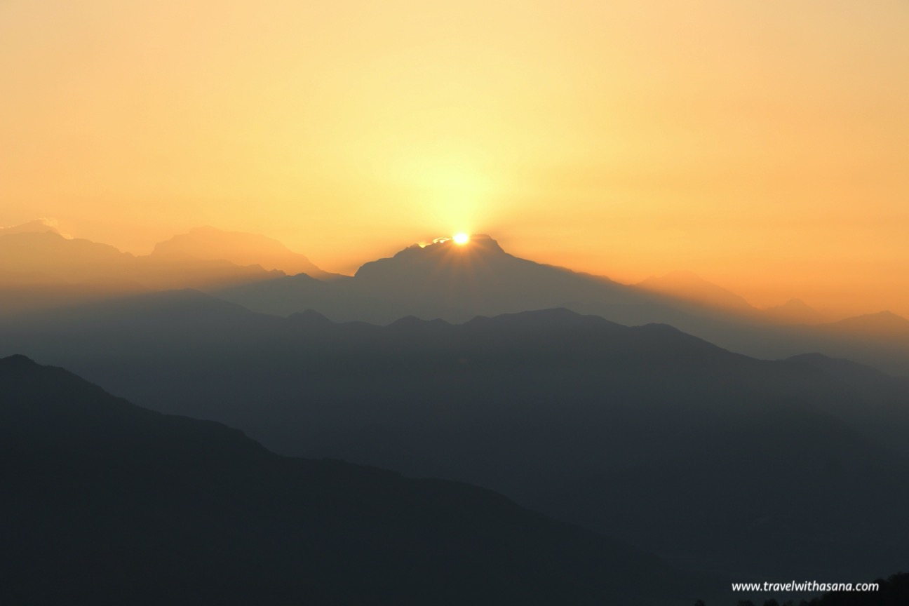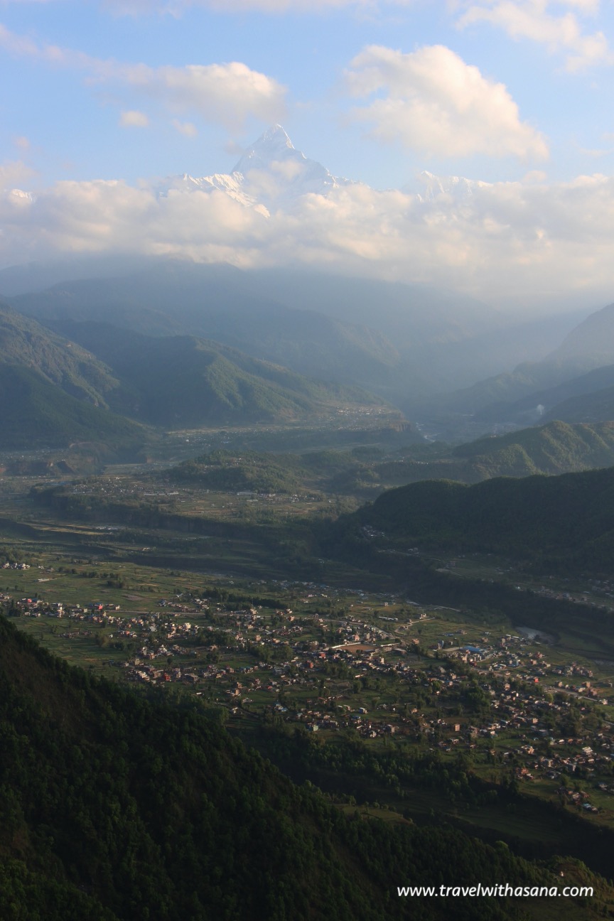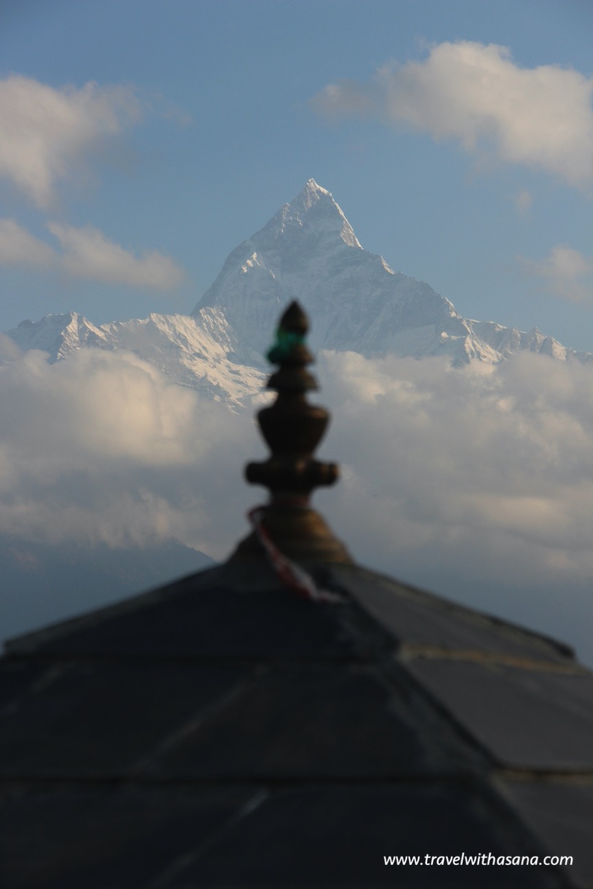 Early in the morning before sunrise (around 5:30 am), we hiked to the Sarangkot Sunrise Point where so many people were already there. We picked our spot before sun magically appear between the mountain ranges. All of the sudden all the mountain, the bends, the valley, and the small houses appears, with the Machapuchare (also called Machhapuchchhre or Machhapuchhre) stood tall behind like a holy protector.