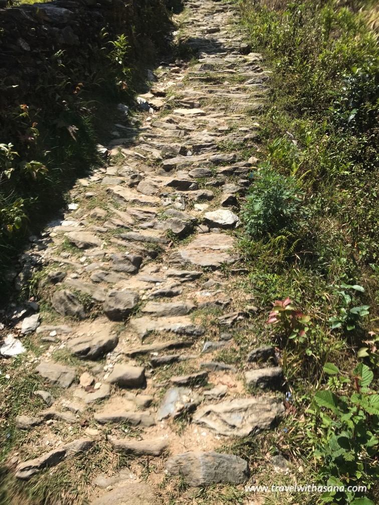 We were picked up from our accommodation in Pokhara to the 3 Sisters Adventure Trek office and waited until the guide came for us. Our guide was in her early 20s and very knowledgeable about the area, and she decided to switch thing a little bit. Our trek route was switched, so that our descent route became our ascent route as she wanted to make the most of the good weather. We started trekking around 11 am to Sarangkot, passing narrow street, wide asphalted street, and just some bushy route.