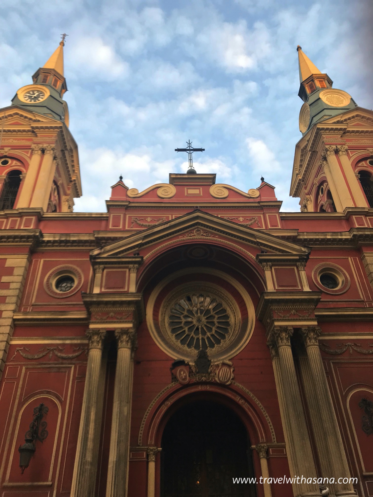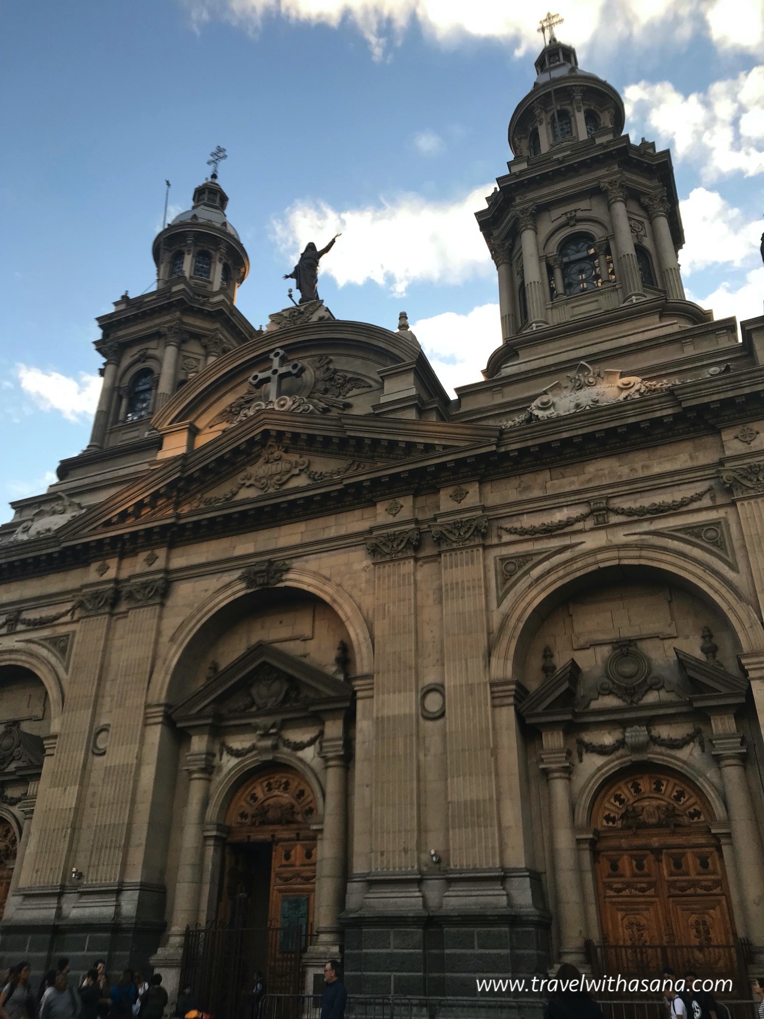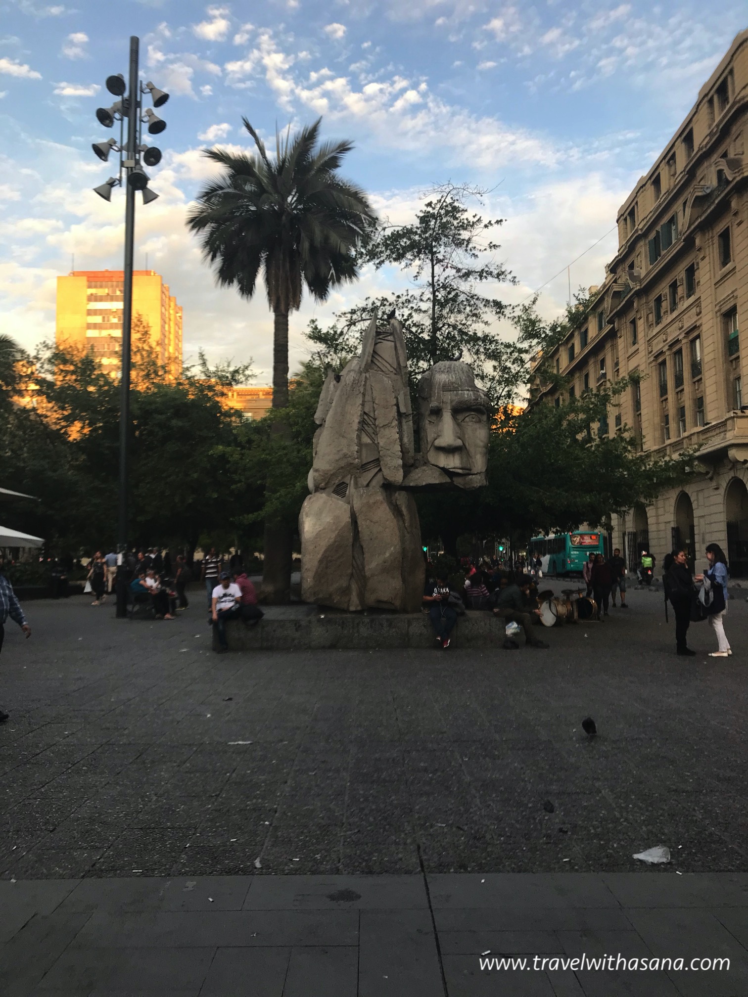 Luckily enough, Plaza de Armas was just 10 minutes away from Airbnb, so yeah, we hit it right away. And oh boy, it was very beautiful as the sunset started settling in and put color on the sky. Some notable building surround this plaza are \Metropolitan Cathedral of Santiago, Central Post Office Building, and Palacio de la Real Audiencia de Santiago.