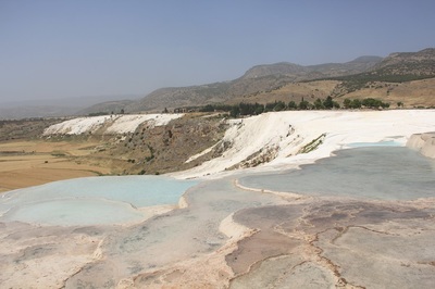 When i entered the area, not all terraces were opened to the tourist. Only on the top row terraces are open and all tourist should open their shoes/sandals/ flip-flops. During the 1960 there were a lot of hotels built in the area and they drained the water to fill their swimming pool. The hotels were then demolished to better preserving the area. These are some pictures of Pamukkale.