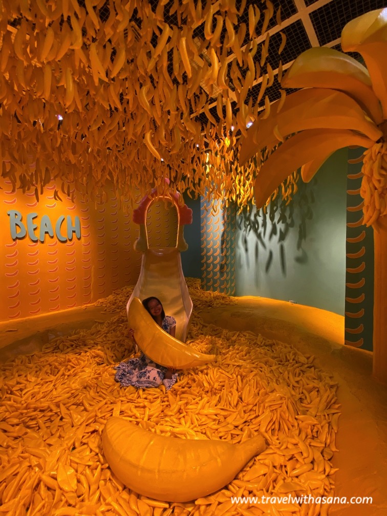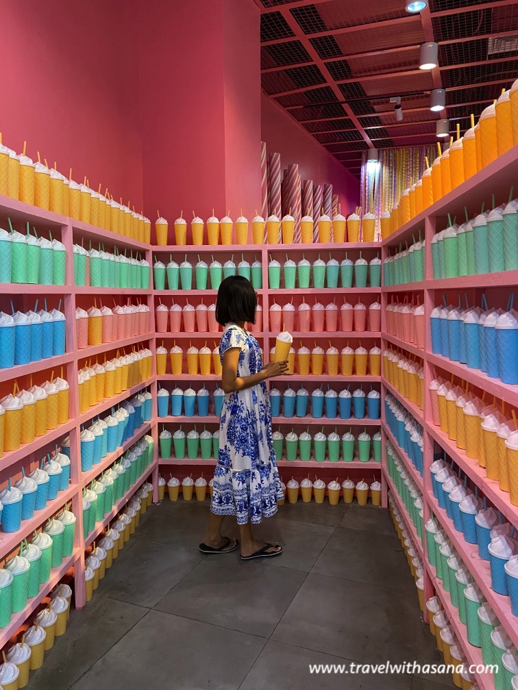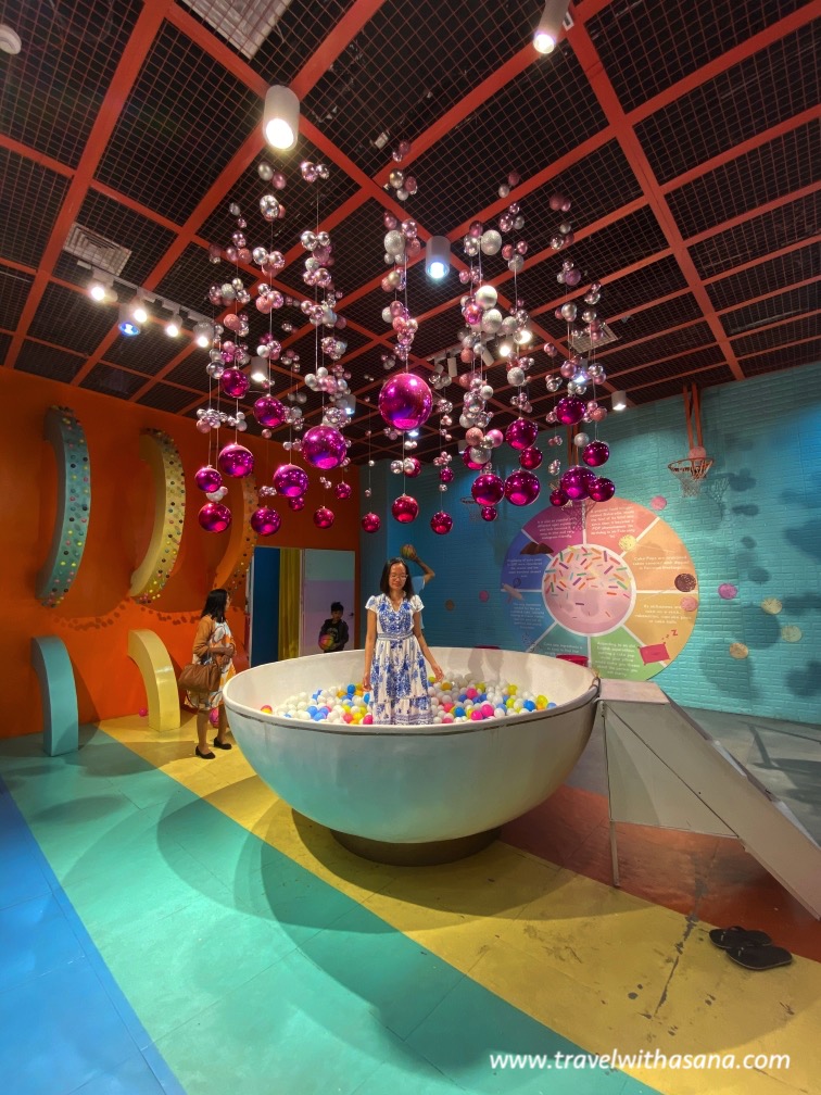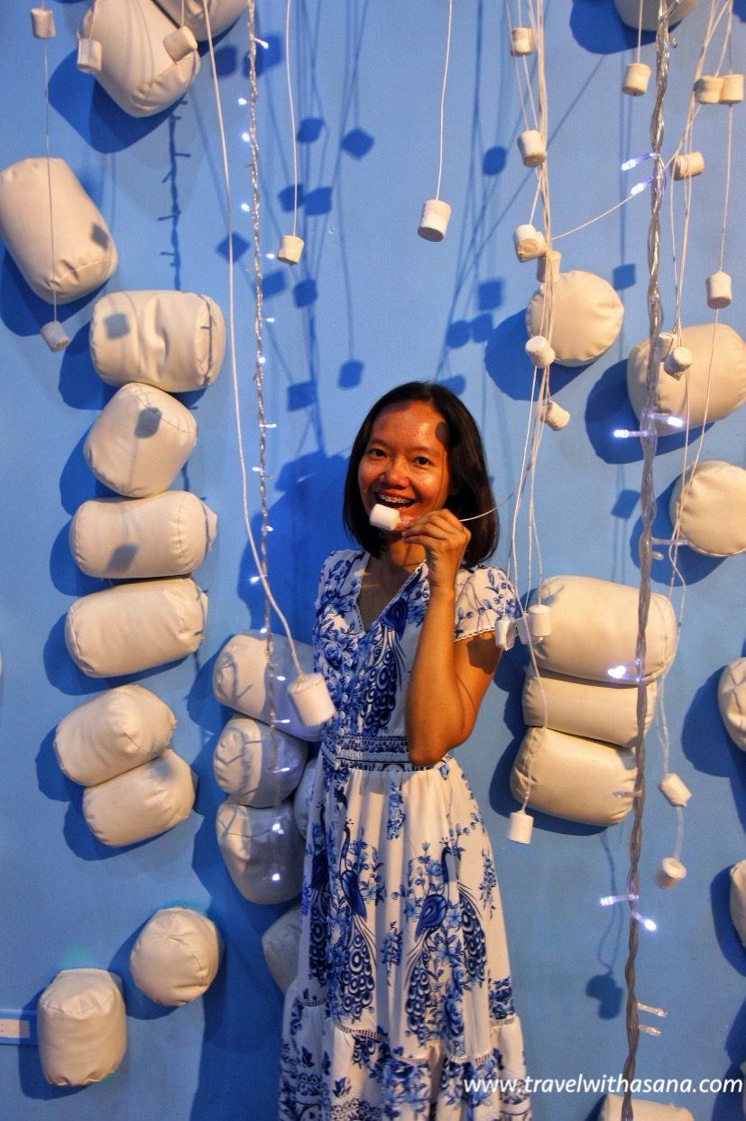 The room themes in Dessert museum are vary from marshmallow, bananas, milk, candy bars, lollipop, ice cream, doughnut, and many more. What is interesting about it, is that you will get a card when you enter the museum. As you enter each exhibition room, you can present the card and will get a REAL dessert according to the theme of the room you are currently into. The card will be stamped indicating that you have had it. This is to prevent getting more dessert than your quota. If I remember it correctly, you will get 8 free desserts. My favourite is the mango-flavoured ice cream. It is a super fun place, if you are into taking picture instagrammable and have a sweet tooth like I do!