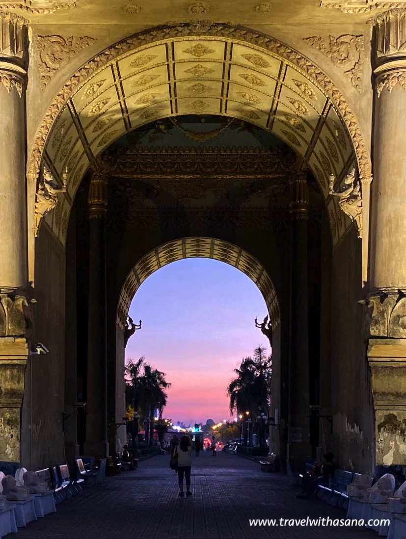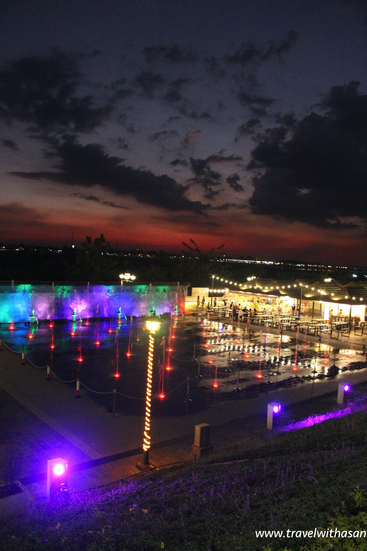 During the sunset, you can watch from one of the gate’s door as the sun set from the horizon and it’s such a beautiful view. During the night, the fountain from the garden emitting colourful lights and it’s worth checking.
