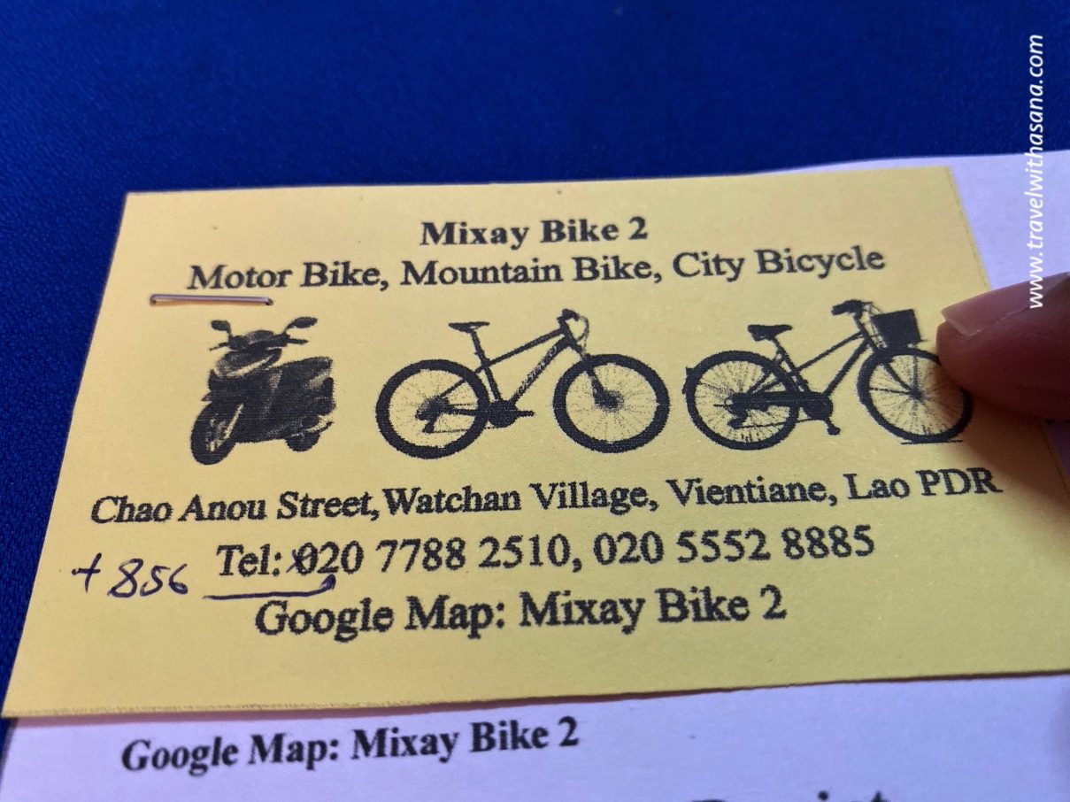 On the first day, we went sightseeing around the city center (Patuxai monument and Sitsaket Temple) so walking was the best way to get around the city. But on our last day in Vientiane, we rent a motorbike on Mixay Bike 2. We got the recommendation from our guesthouse to rent on Mixay Bike 1 but they ran out of bike, so we were referred to Mixay Bike 2. These bike rentals were managed by brothers and give reasonable price. It has automatic and semi-automatic for 70,000-80,000 Lao Kip per day.