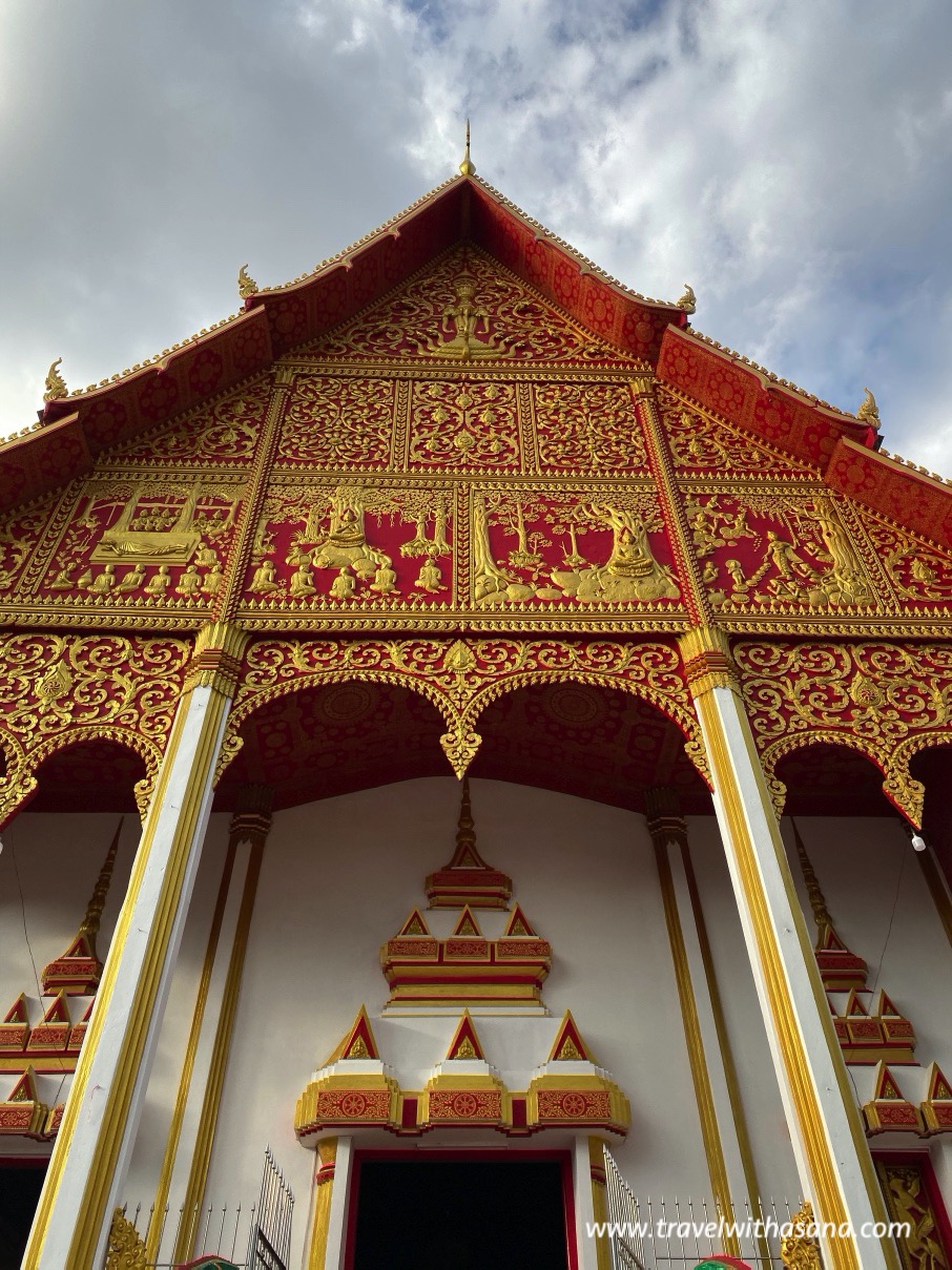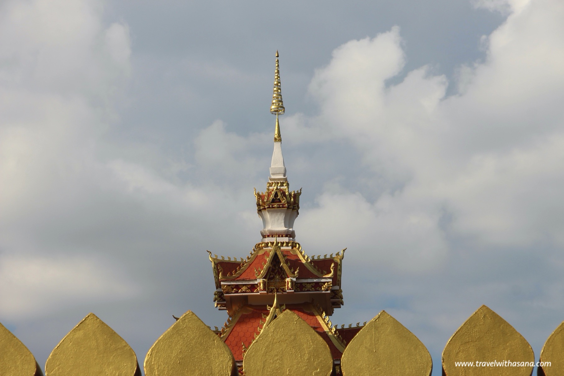 These two temples are located near Pha That Luang Stupa. Out of four temples that were built around the Stupa (one on each side) in the 16th century, only two remain today. To the South is the Wat That Luang Tai, an open sala like building with a three tiered roof. To the North is the Wat That Luang Neua. This is the temple where the supreme patriarch of Laos Buddhism resides. We went to the Wat That Luang Tai and it was such a beautiful temple with intricate ornament on its roof.